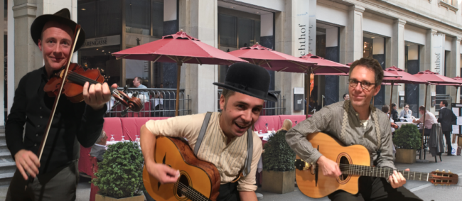 Das Restaurant Bärengasse feiert am Samstag, 8. September, sein 10 Jähriges Jubiläum. Wir wurden eingeladen an diesem besonderen Anlass zu spielen. Gadjolinos spielen somit zum ersten Mal in Zürich. Seid alle herzlich willkommen. Auftrittszeiten: 1. Set: 18h00 – 19h00 Uhr / 2. Set: 20h30 – 21h30 Uhr Restaurant Bärengasse, beim Paradeplatz, 8001 Zürich www.restaurant-baerengasse.ch
