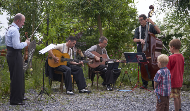 Die Stimmung war von Anfang ausgezeichnet. Das Team der Gärtnerei NatUrban hat uns frisch fröhlich begrüsst und wir Gadjolinos wurden organisatorisch und kulinarisch verwöhnt. Mit diesem Elan konnten wir gut in unsere Saiten langen und die ca. 100 Gäste mit fröhlichem Gypsy Swing beglücken. Ganz speziell wollen wir uns bei Andrea Graf von der Gärtnerei…